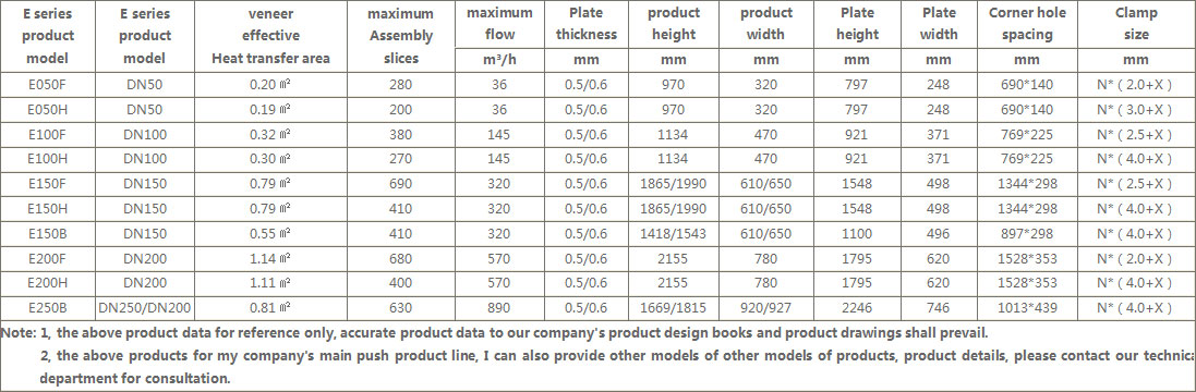E Series Detachable Plate Heat Exchanger Product Specification Data Sheet